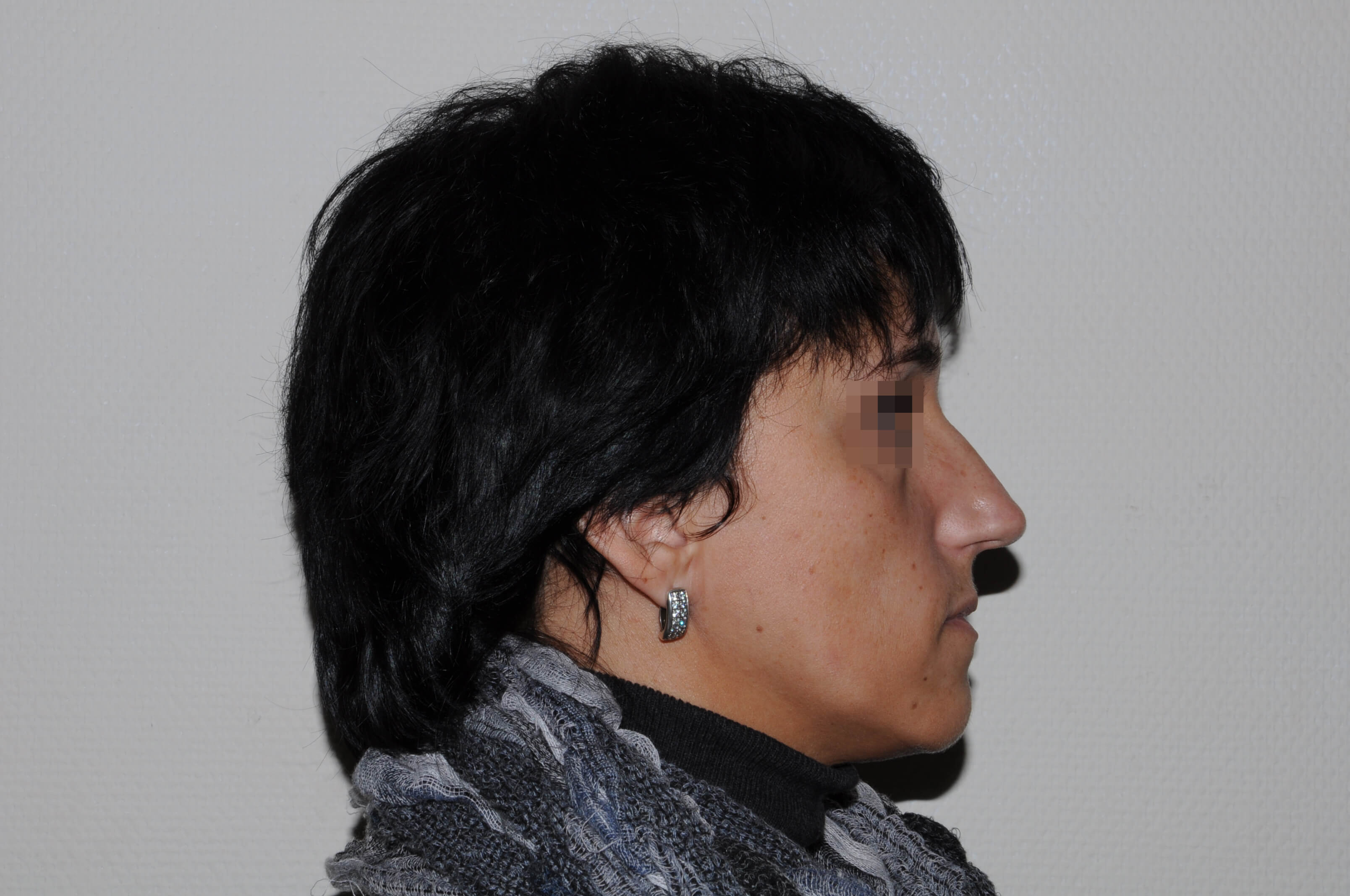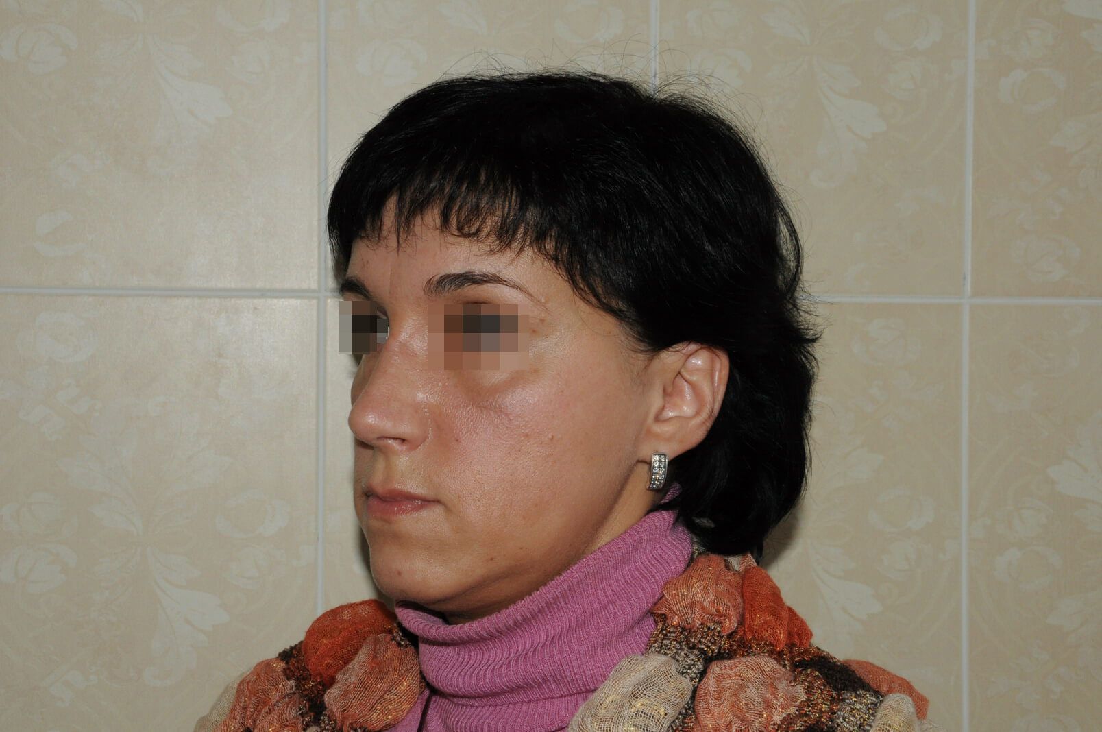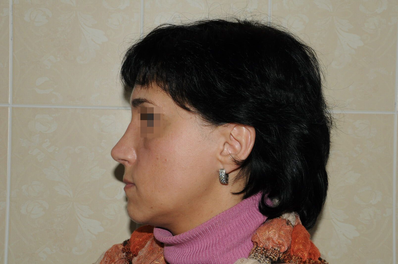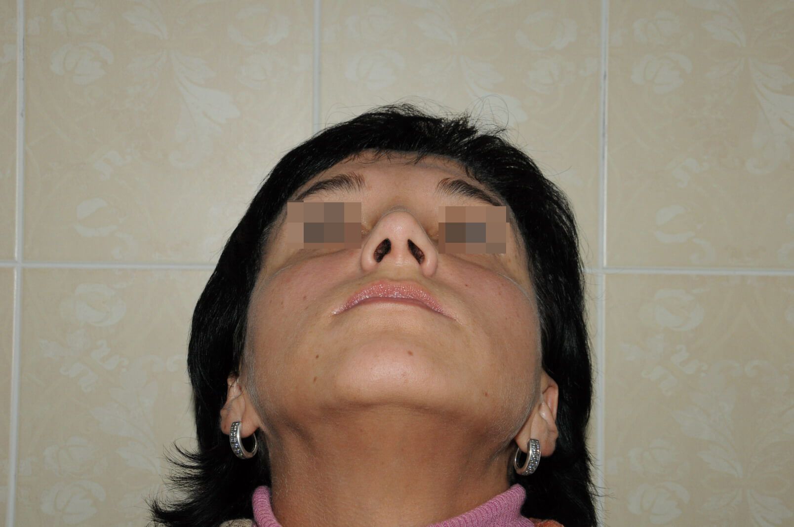 Пациентка обратилась с жалобами на нарушение носового дыхания и на эстетическую деформацию наружного носа. Присутствовала горбинка спинки носа, с высокой проекцией. Удлиненный и широкий кончик носа. Вертикальная асимметрия наружного носа.