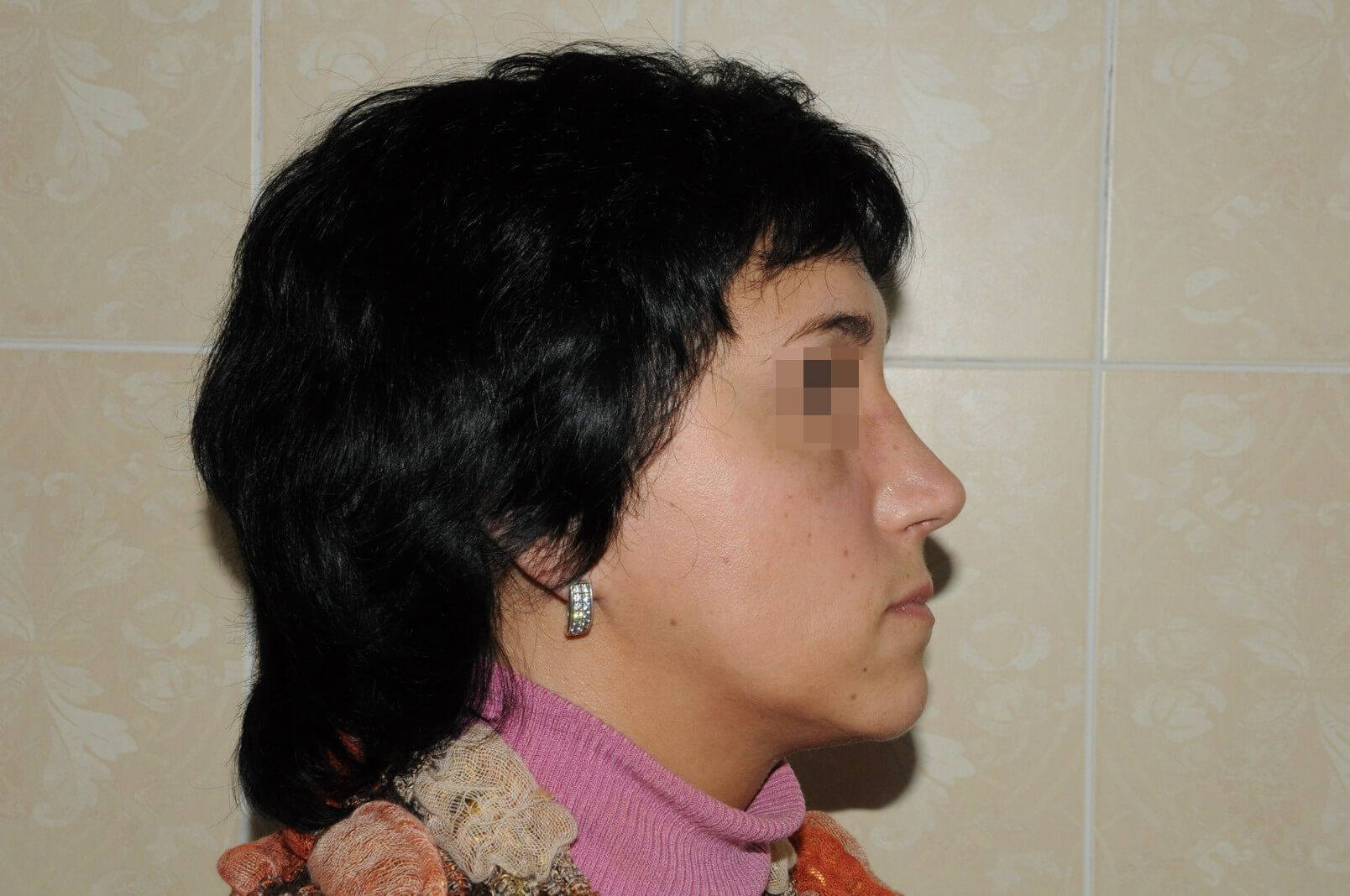 Пациентка обратилась с жалобами на нарушение носового дыхания и на эстетическую деформацию наружного носа. Присутствовала горбинка спинки носа, с высокой проекцией.