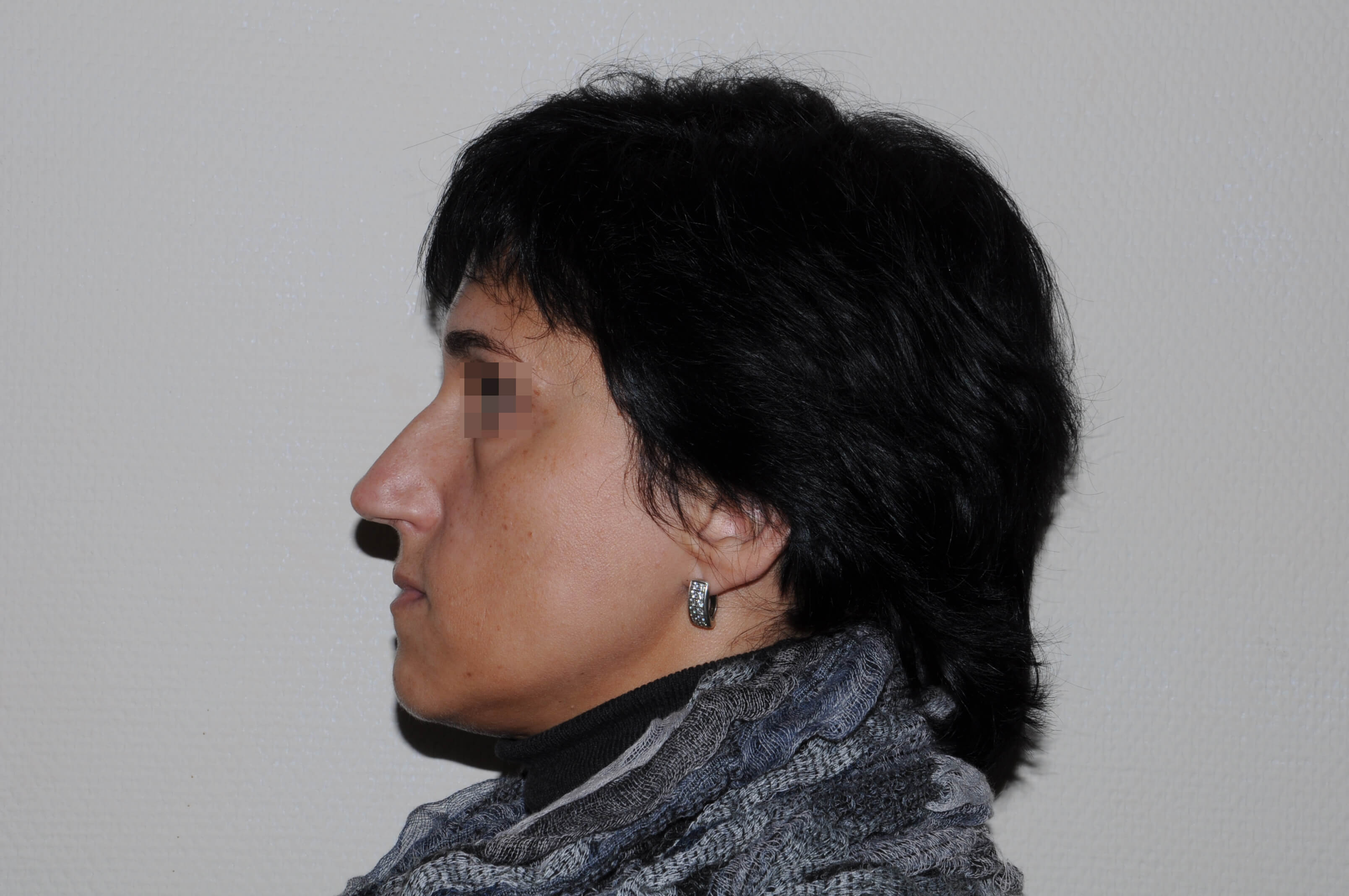 - Ринопластика в объеме удаление горбинки и уменьшения проекции спинки носа. Боковая, несимметричная остеотомия. Создание опорной конструкции их хрящевых трансплантанотов перегородки носа для укрепления спинки носа и предотвращения повторного искривления носа. Укорочение, сужение кончика носа путем резекции цефалических порций крыльных хрящей. Между медиальными ножками крыльных хрящей установлен трансплантант-стропилка. Трансплантант на кончик носа по Sheen. Трансплантаты из хрящей на крылья носа для коррекции неровностей рельефа кожи.