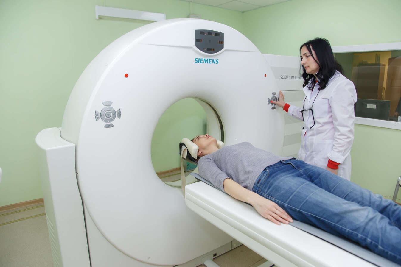 В кабинете компьютерной томографии, установлен многослойный спиральный компьютерный томограф «SOMATOM Emotion 16» фирмы SIEMENS, в котором за один оборот трубки можно одновременно получать информацию о 16 поперечных (аксиальных) томографических срезах, толщиной 0,6 мм.